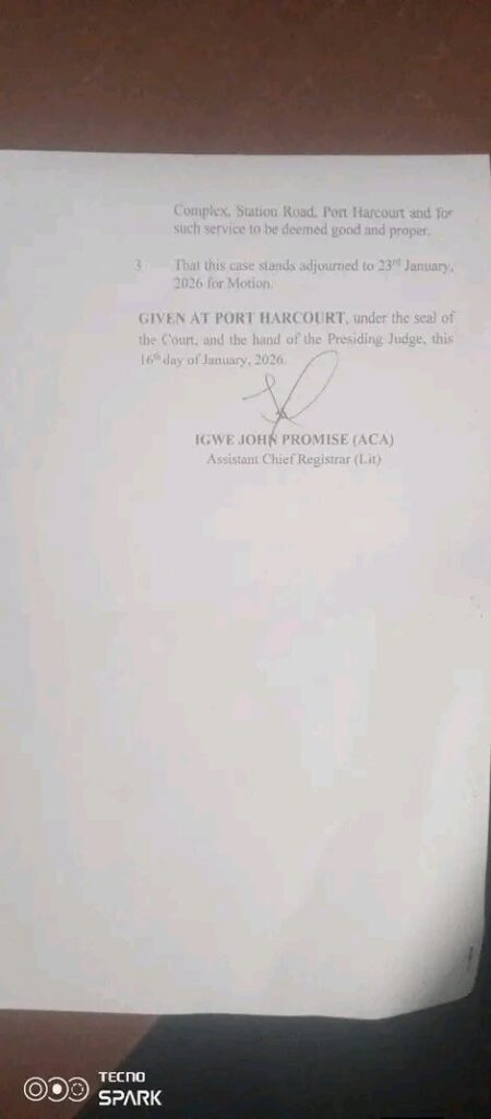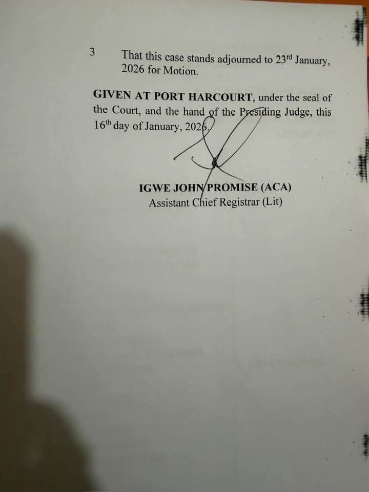 Justice Fiberesima thereafter adjourned the case to January 23, 2026 for hearing of the motion.