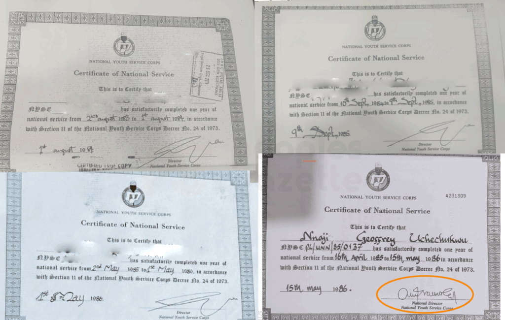 The Gazette’s extensive findings showed all certificates issued in 1986 were signed by Etuk Akpan, who was appointed to lead the NYSC from January 1984 to December 1987.