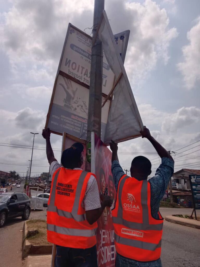The statement read: “In line with the Maintenance Notice issued to all outdoor advertisers, officials of the Ondo State Signage and Advertisement Agency (OSSAA) have commenced a coordinated street-by-street clean-up, inspection, and corrective exercise across Ondo State, effective Friday, 6th February, 2026.